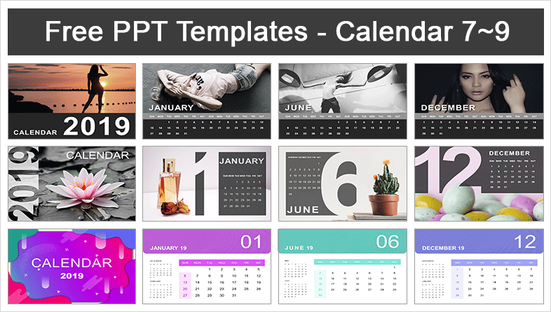 2019 Calendar PowerPoint Templates: This template is made up of nine styles of calendars, so you can use it for your home or work. Calendar PPT templates are made in A4 size, so you can easily print and use them. This Calendar Templates designed 10 different styles in 9 files and consisted of each ppt file. You just download the zip file and unzip it.