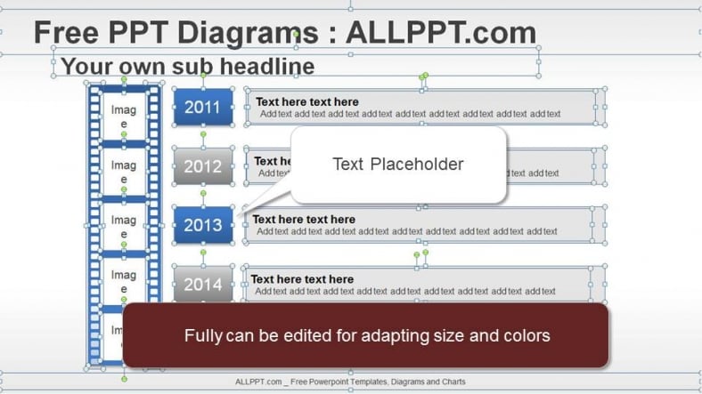 5 Years Film Timeline PPT Diagrams is can be customized in color and size, text, position of graphics and change the background style.