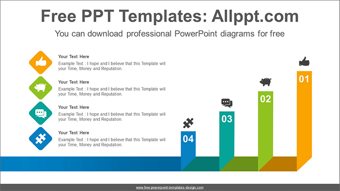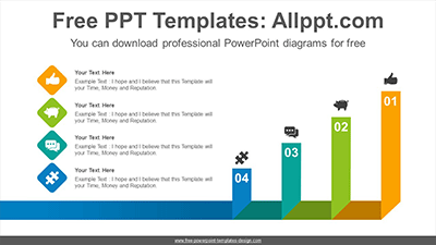 Folded colored ribbon PowerPoint Diagram Template: This template is a colorful ribbon design folded at right angles. Rectangular folded ribbons gradually increase in size and height. It is also an editable graphic with text and icon.