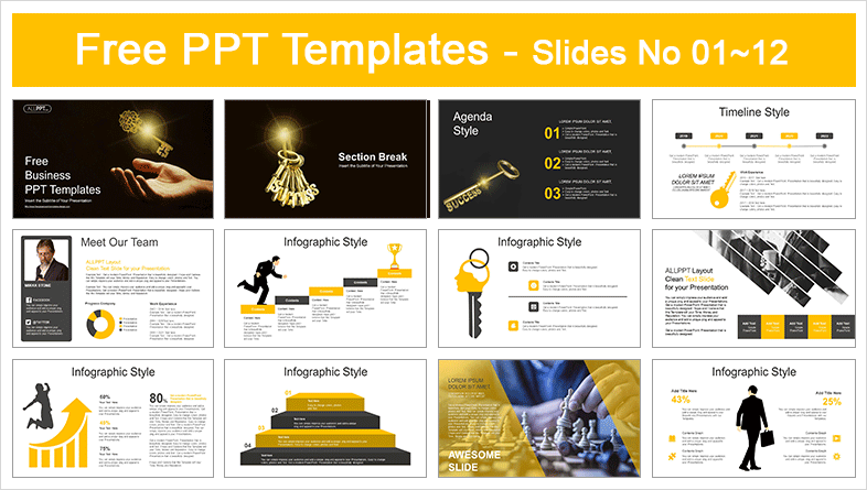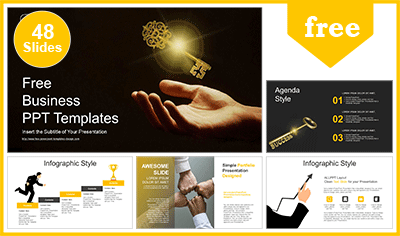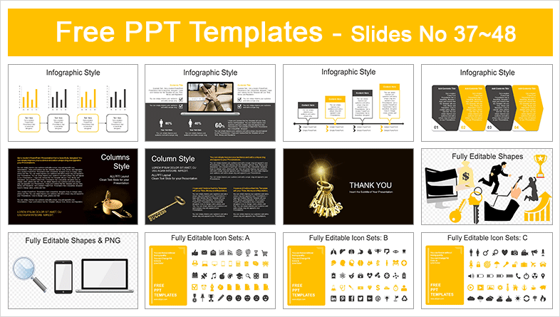 Businessman Hand Golden Key PowerPoint Templates: It includes 48 slides