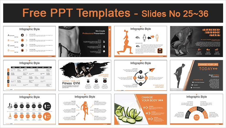 Diet Fitness Sports Concept PowerPoint Templates: This template is based on diet and workout. It also includes a variety of backgrounds such as fruits, vegetables, and workouts. We believe that Diet-based templates are the most versatile.