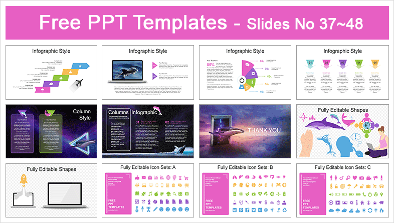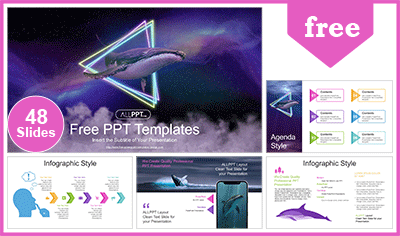 Flying Space Whale PowerPoint Templates: It includes 48 slides