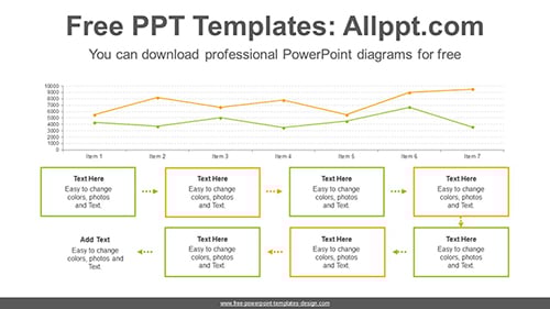 Text box line chart PowerPoint Diagram Template: This diagram is a line chart with text boxes and arrows. This line chart helps you visualize changes, comparisons, growth rates, and more. You can also modify data with simple formula input.